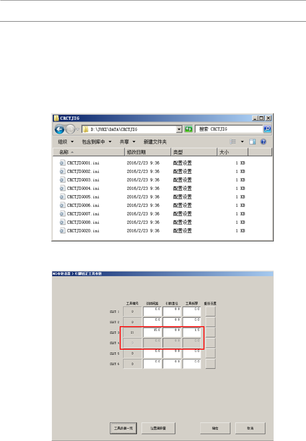 ” D:\JUKI\Data\CRCTJIG”中追加工具 INI 文件。