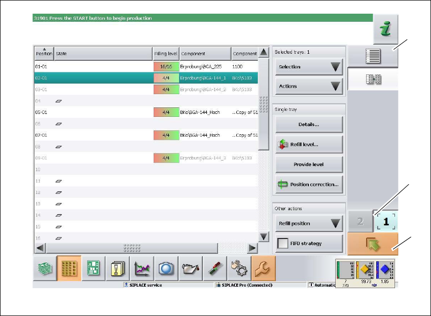 Ábra 5.5 - 4 Kezelőfelület "WPC" nézetben (a SIPLACE SX2 példáján)