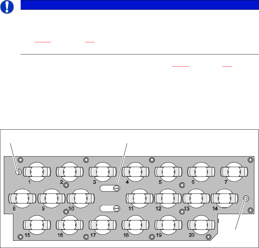 A pipettacserélő minden tára két jellel rendelkezik a helyzet meghatározásához.