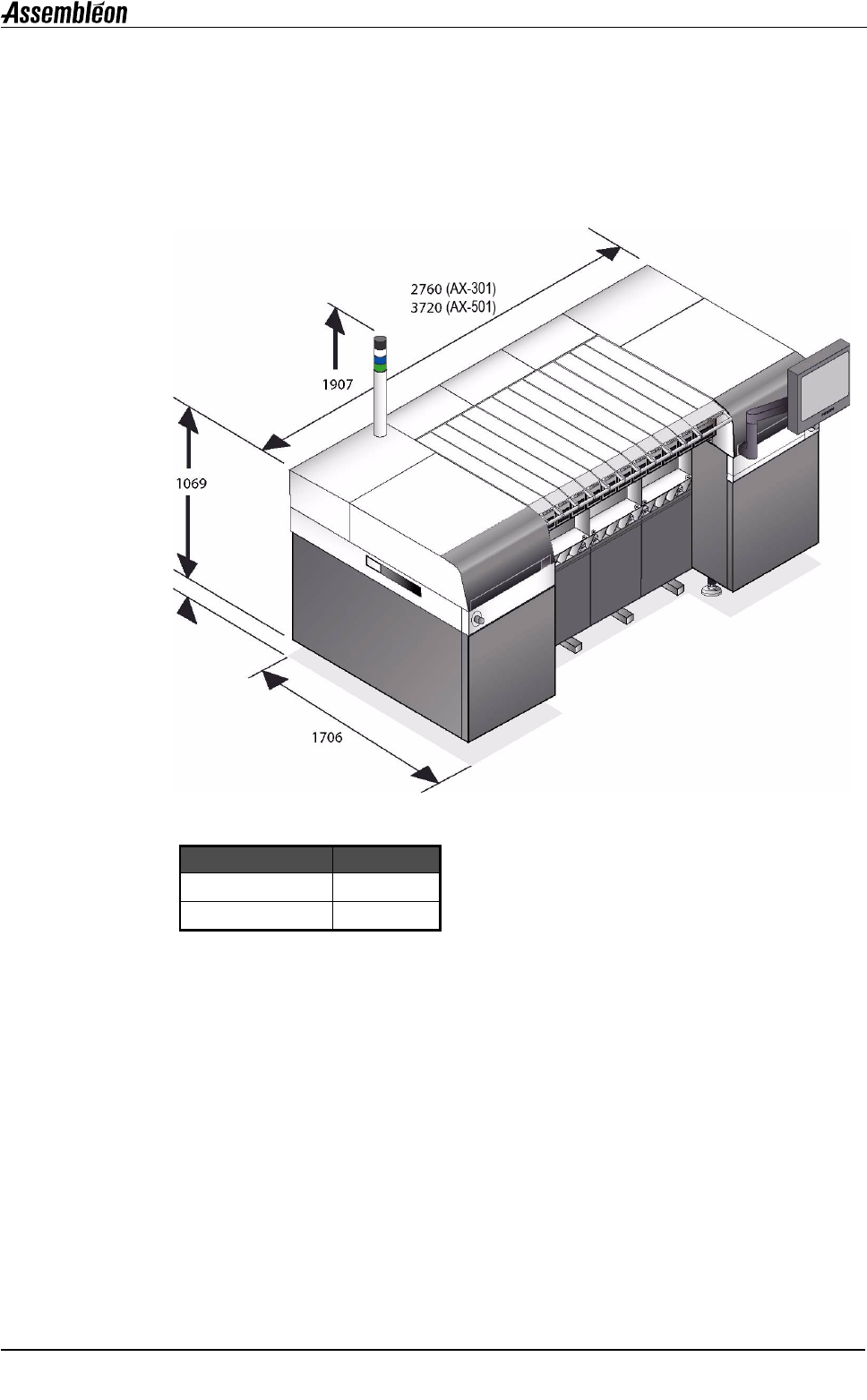4022 593 52701/1 × 1 08.01 AX- 301/501 AX-3/5 A.37 A03.fm A3 A3.2 规格 A3.2.1 不包括供料器推车在内的机器尺寸和重量 A3.2.2 包括供料器推车在内的机器尺寸和重量 机器 重量…