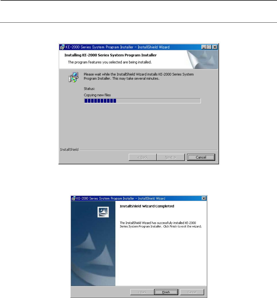 维修调整要领书 12-33 8) 安装中间,进行状态以条形图显示。 9) 安装结束后,显示安装结束画面。 点击 [Finish] 按钮,结束安装。