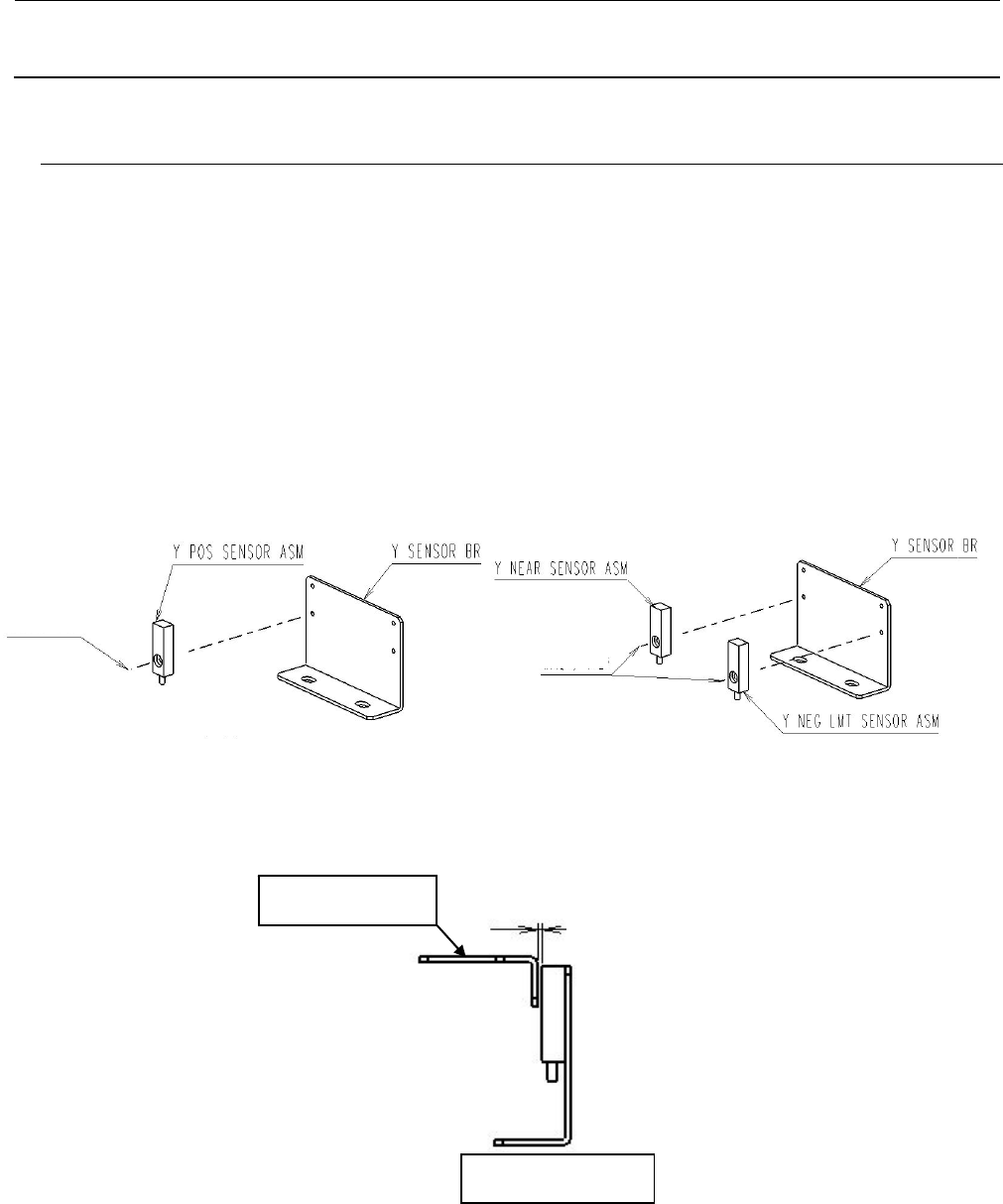 维修调整要领书 1-5 1-2-2 . Y 轴限制传感器、 Y 轴原点附近传感器的更换 ※ 更换传感器时,不需要调整位置 。 ※ 包括支架也更换时,需要调整位置。 1) 请拆下作为更换对象的传感器的连接器,松开安装螺钉,更换传感器。 2) 安装时,以相反的操作步骤进行。调整到 X SENSOR DOG 与传感器的距离为 0.8 ~ 1.5mm (目标 1.0mm ) , 然后固定之。 (参照图 1-2-2-3 ) 如包括托架一起更换后,…