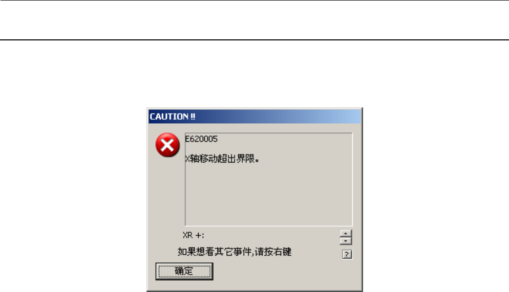 请确认监控器上弹出 X 轴移动极限的对话框。