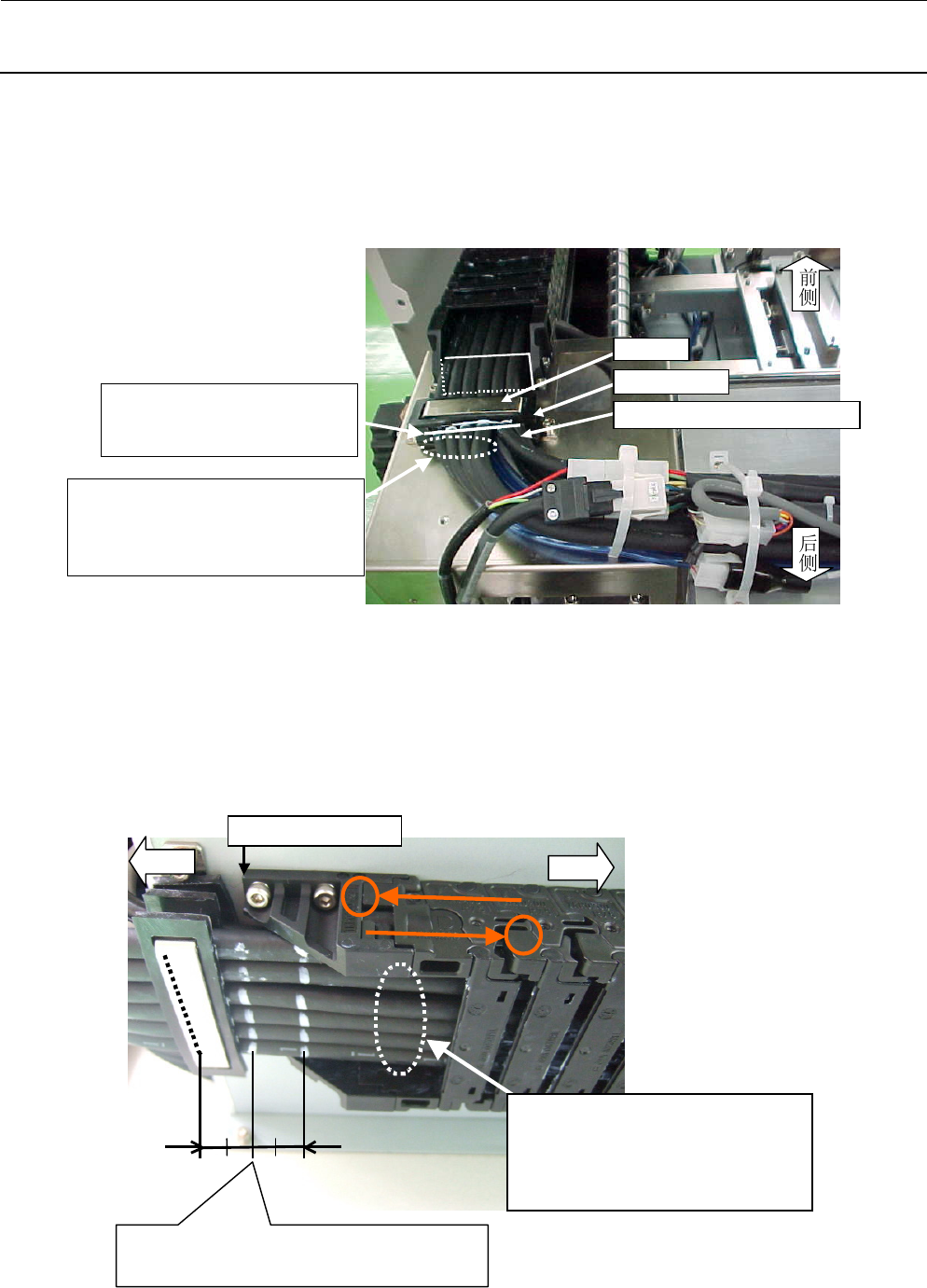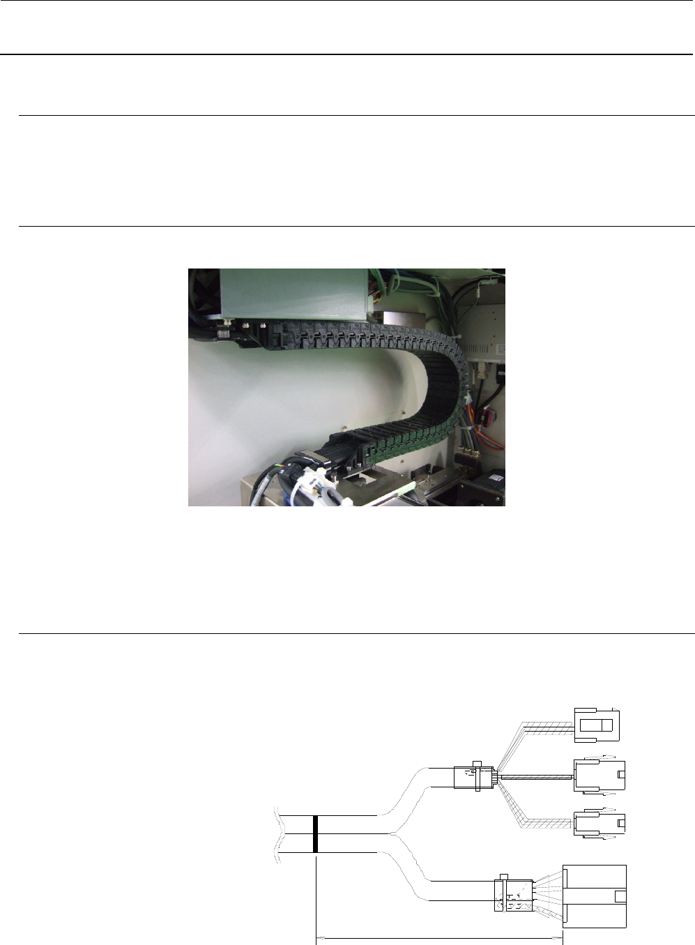 维修调整要领书 1-19 1-5-7 .电缆支座的装配 1) 在 XY BEAR CABLE ASM ( 40076787 ) 、Y BEAR CABLE AS M (40076795)、OPTICAL FIBER CABLE 7M ( 40044543 ) 、1394 机器人电缆( 40044517 )各电缆纳入塑料导轨的部分涂敷润滑油。 ※ 润滑油:货号 MGREAS400GA GERALYN #2 2) 配置在从 X 轴引来的电缆…