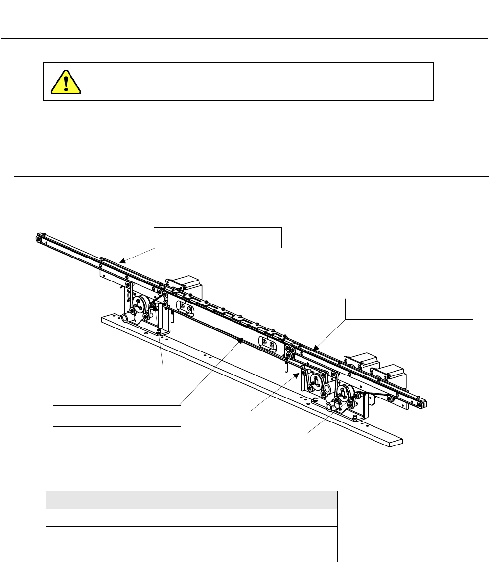 调整方法是,在传送轨道上用铅笔等以 200mm 的距离标上二个记号。