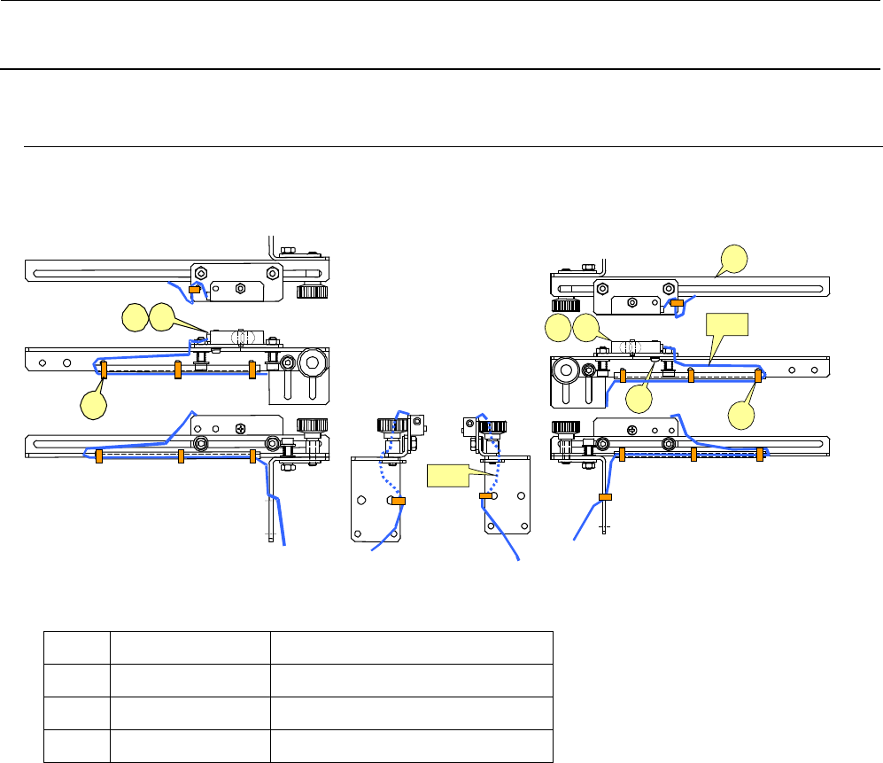 维修调整要领书 5-3 ② ① ④ ⑤ ③ A B ② ③ ④ 5-4 . CONVEYOR RIGHT/CONVEYOR LEFT 传感器的更换 A 部 、B 部的电缆线,在调整完传感器位置之后,请用扎线带固定好,不让张力过强或过松。 左侧的传感器 右侧的传感器 图 5-4-1 ① 40076890 CONVEYOR RIG HT SENSOR ASM ② 40086439 CONVEYOR L EFT SENSOR ASM ③ SL…
