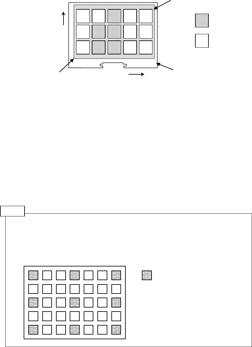 TR6 Series 使用说 明书 3-9 * 怎样数元件剩余数 从左上方朝 Y 方向吸附 时(在贴 片机上可 以变更设 定)的元件剩余 数如下图所示。 中途无元件的部 分也作为有元件计数 ,所以下图情 况下的元件剩余数为 「 11 」。 「元件剩余数」的 主要作用并不是告知贴装 元件的正确总数,而是传 达元件所在位置的信息, 所以 如此计数。无元 件的部分在实际作业 时通过重试次 数的设定等进行适当 处理。 3 ) 元件数输入的结束 …