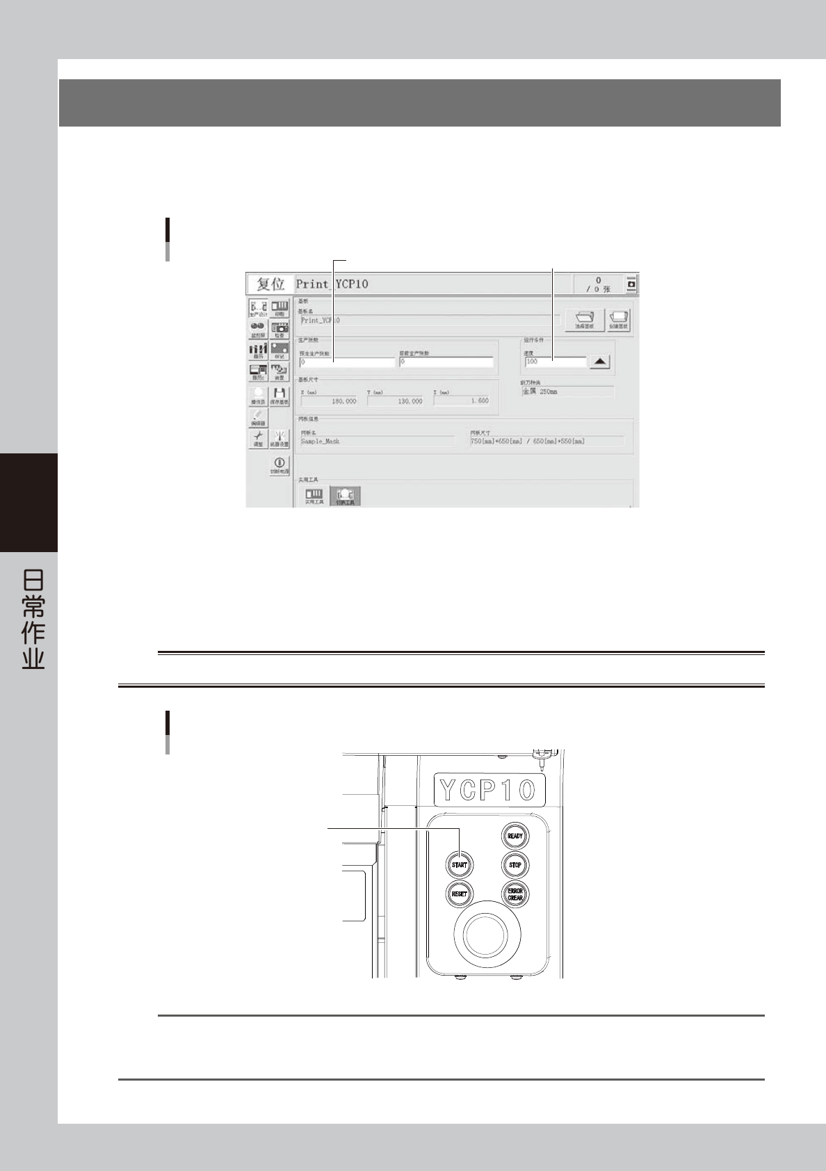 1. 向右转动紧急停机按钮解除紧急停机状态之后,按操作面板的 [READY] 按钮。