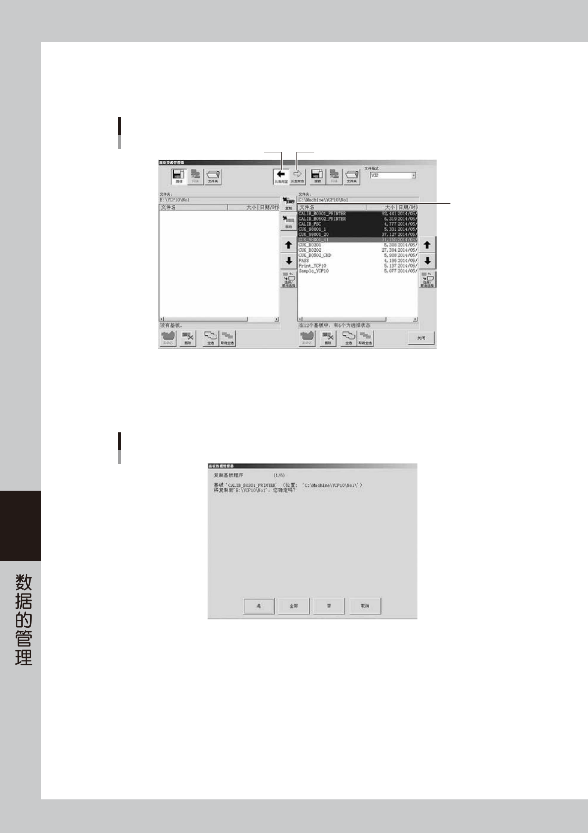 所备份的数据,在脱机软件中登录机器时使用。此外,在升级应用软件之前或更改机器设置之前,为了安全也可以进行