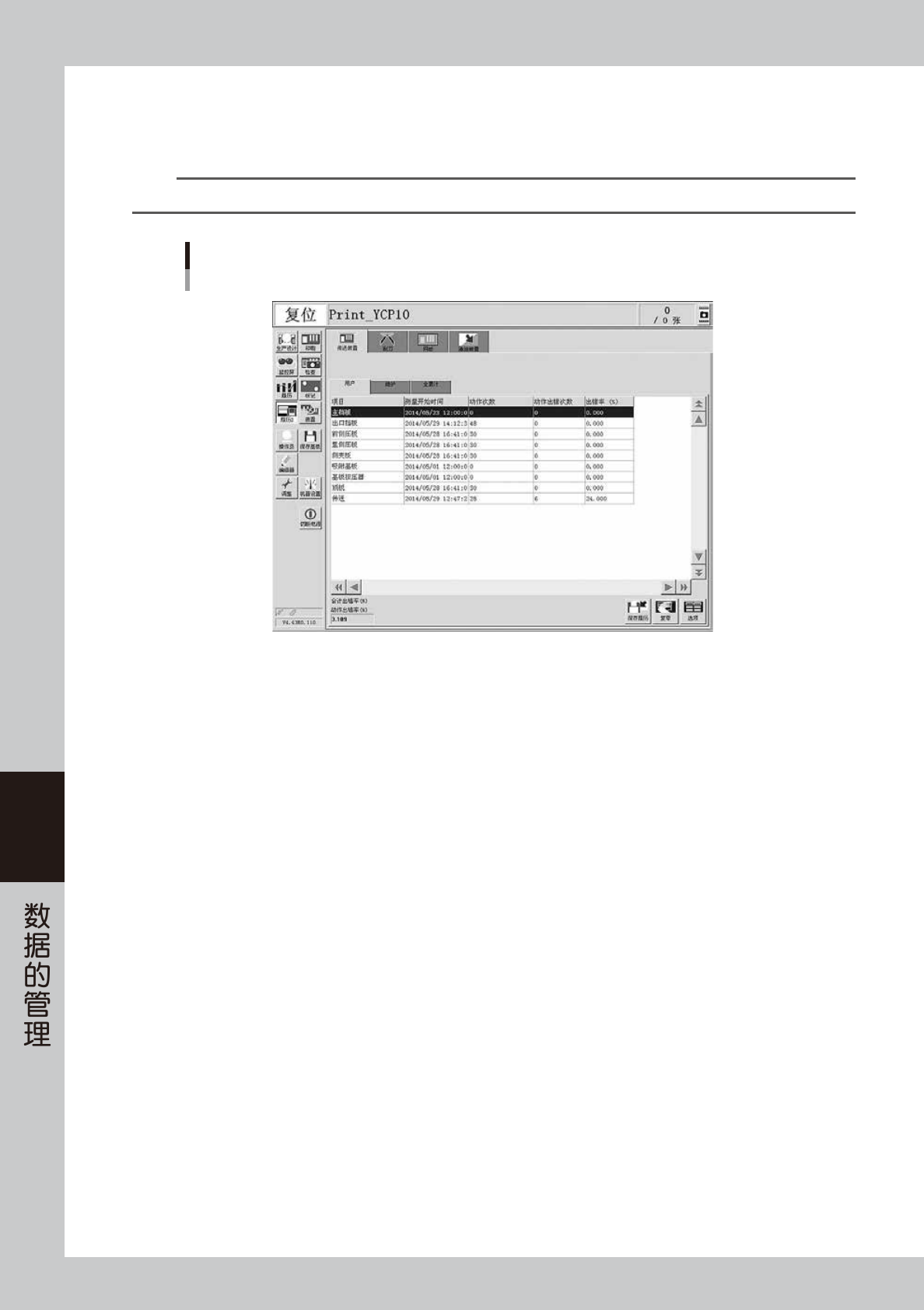 显示出口挡板、压板、侧夹板、吸附基板、顶板等传送装置各个组件的运行履历。运行履历,根据使用目的分别显示在“用户”、