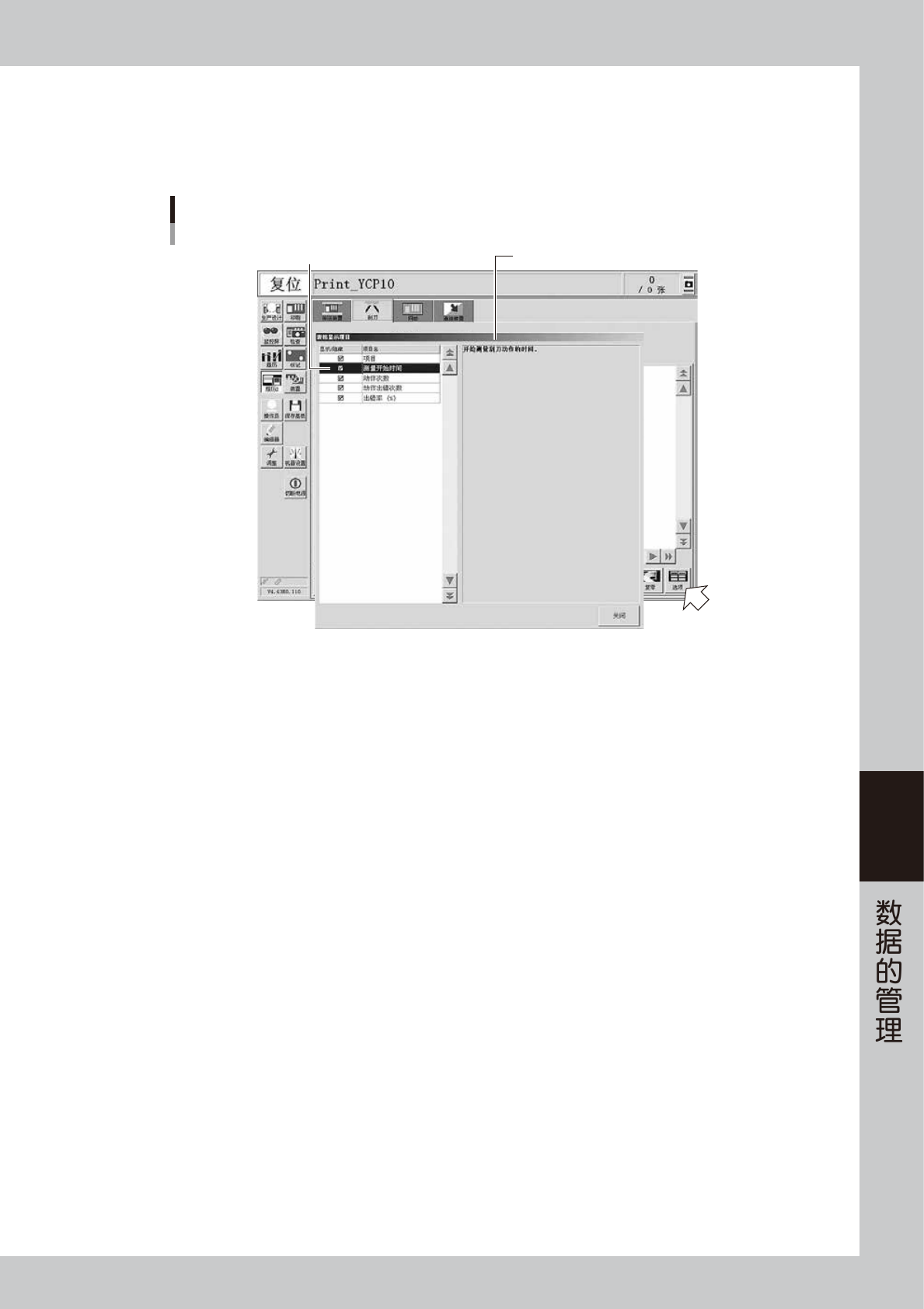 6-21 6 ■ “履历 2”画面中显示的项目 “履历 2”画面各选项卡中显示的项目内容,可按画面右下方的 [ 选项 ] 按钮查看。 按 [ 选项 ] 按钮后,显示“表格显示设置”画面。 如果选择画面左侧的项目,画面右侧便会显示所选项目的内容。 项目内容的显示 以[履历2] -“刮刀”选项卡为例 显示所选项目内容 选择项目 66627-N1-00