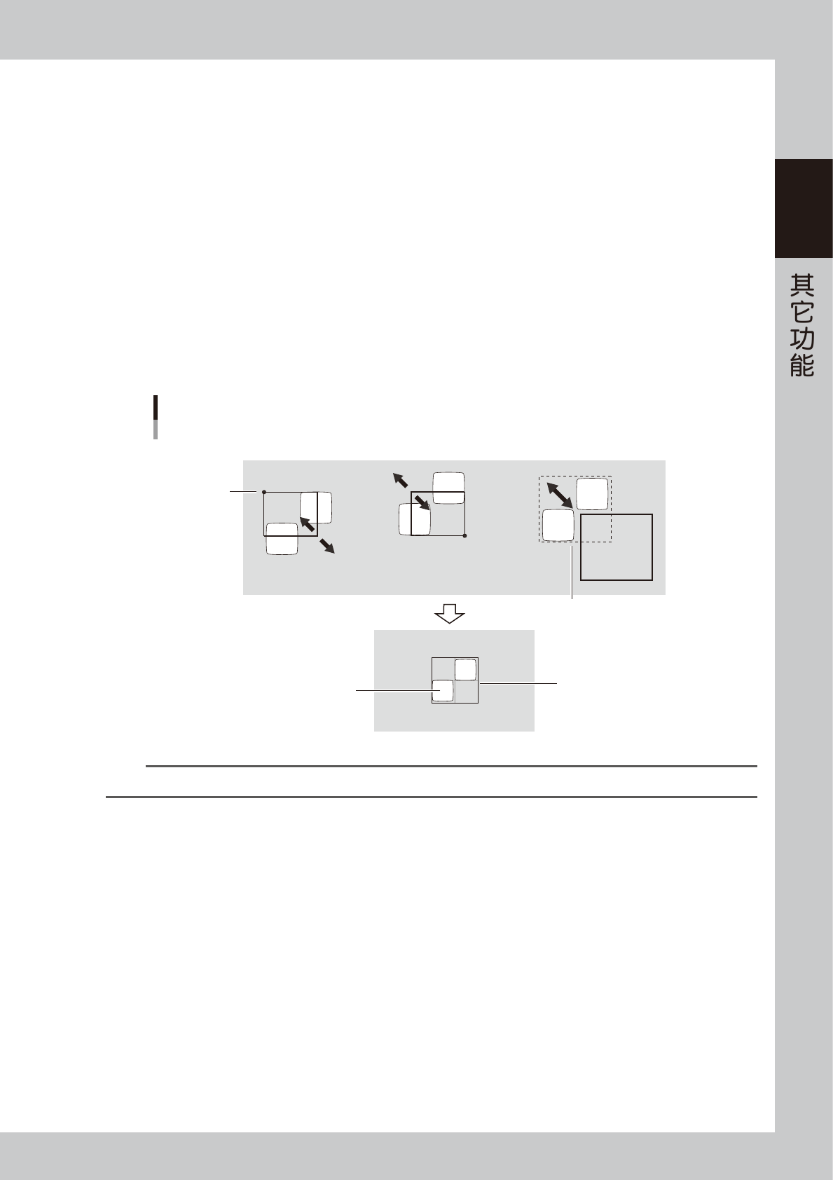 7-13 7 0 决定图样大小。 使用移动按钮与箭头按钮,调节红框的大小、位置,使红框能框住整个图样。 各个按钮的功能,如下所示。 [ 左上移动 ] 按钮 以红框右下角为基准点,用箭头按钮可任意扩大或缩小红框。 [ 右下移动 ] 按钮 以红框左上角为基准点,用箭头按钮可任意扩大或缩小红框。 [ 整体移动 ] 按钮 使整个红框移动。 [ 中心偏移量 ] 按钮 想要使基准位置的十字光标 ( 粉红色 ) 从红框中心偏移时使用此按钮。 [1 像…