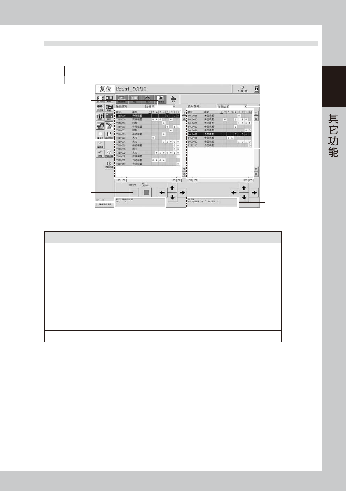输入信号的注释部 显示光标所在行的输出信号名和“0”、“1”的含义。