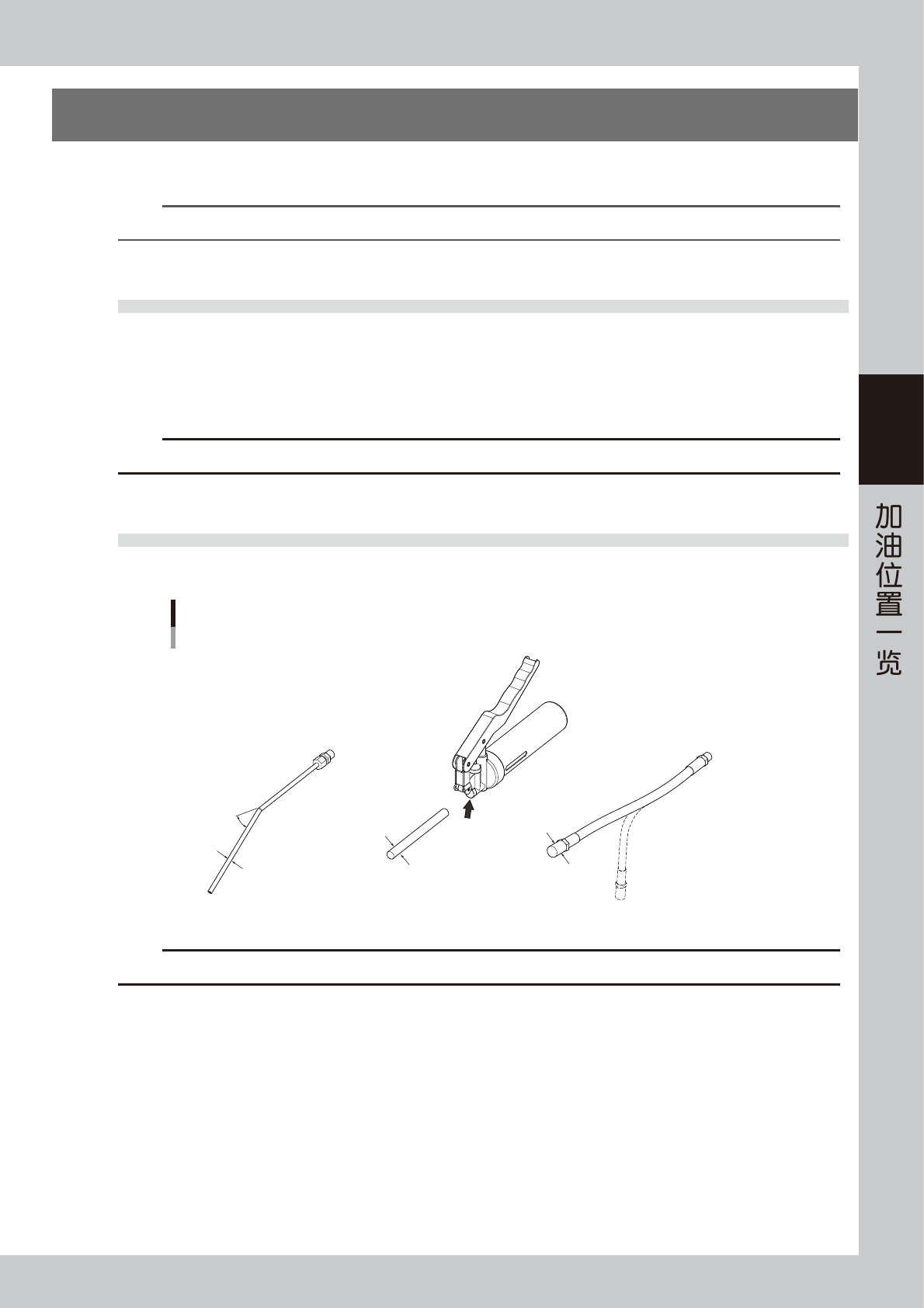 加润滑油时使用润滑油枪。请根据加油位置,从 3 种枪嘴中选择适合使用的枪嘴。