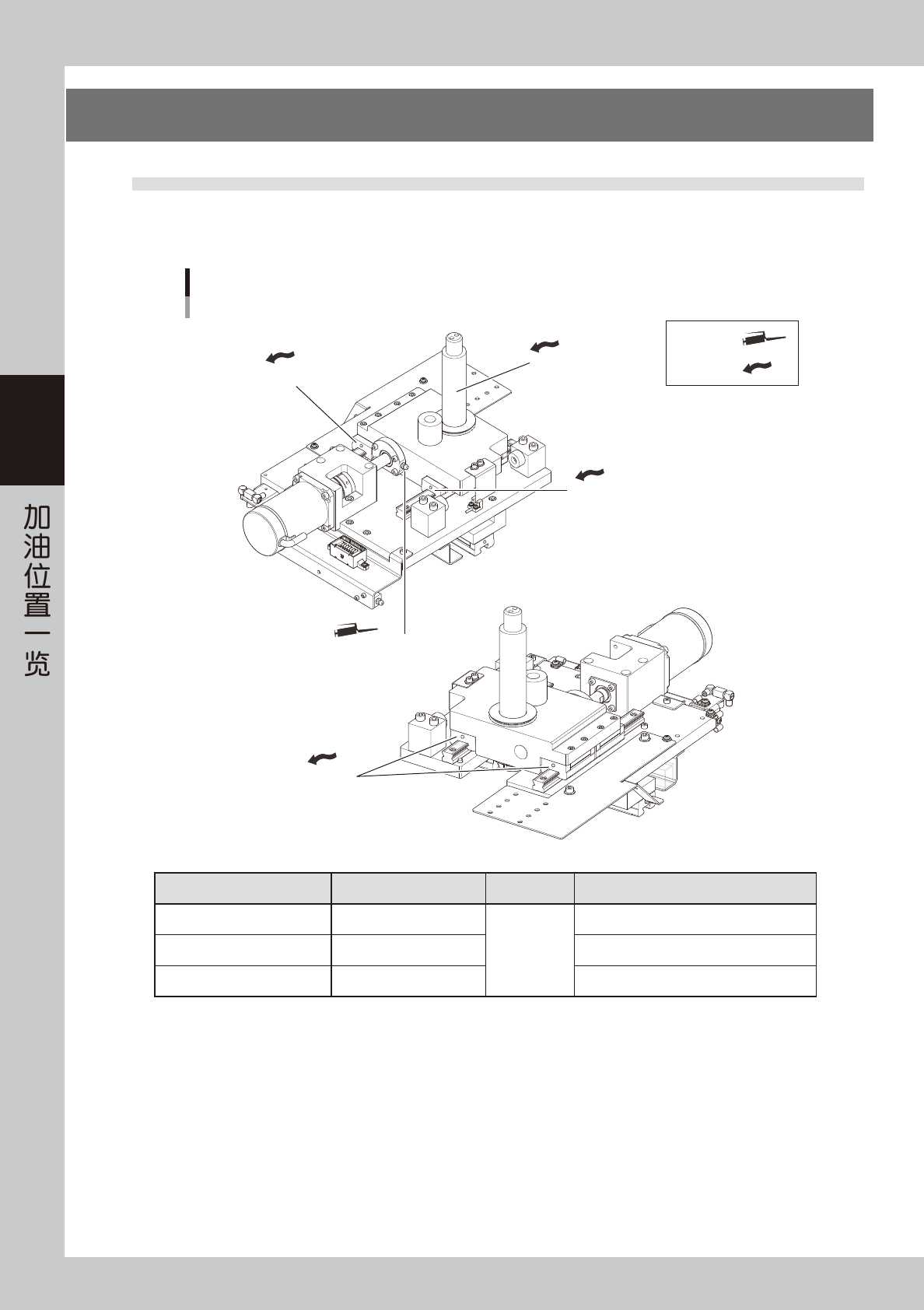 本章节,主要介绍各部的加油位置、加油周期以及加油方法。