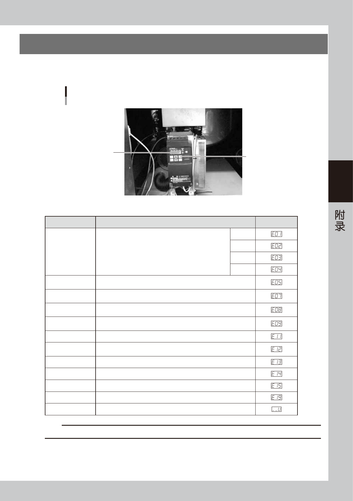 错误警告画面。此时,务必确认逆变器显示窗中显示的错误代码,并与本公司或代理商联系。