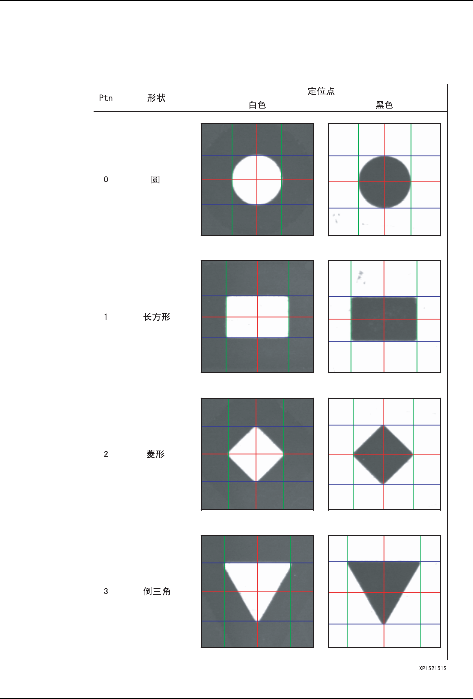 使用鼠标拖动卡尺线,与定位点的外形相吻合设定中心。下面说明各种定位点与卡尺线相吻