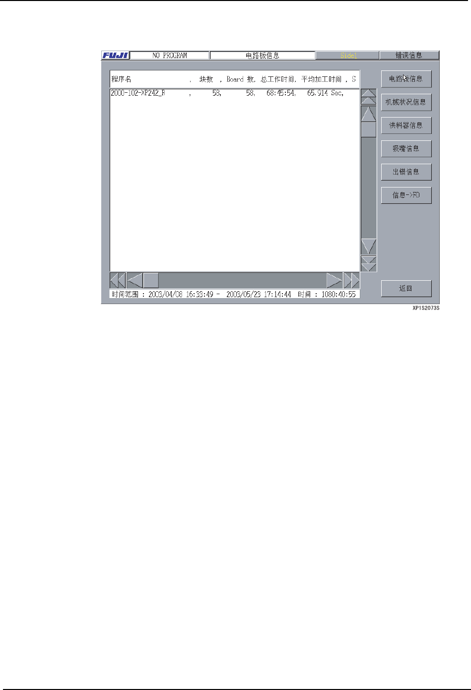 显示满足指定条件的生产记录数据,或是显示保存在记录文件中的生产程序名称。如果选择