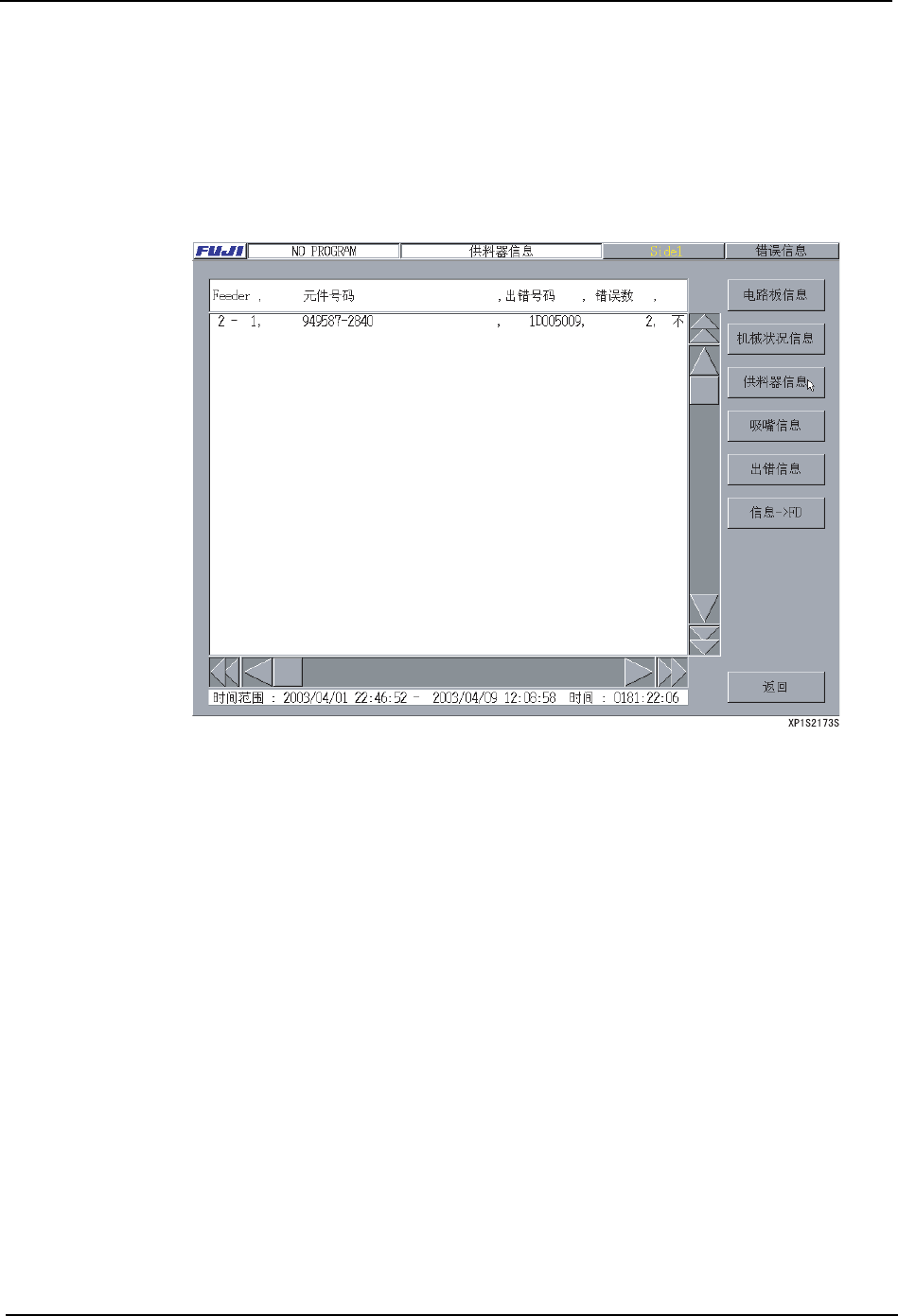 选择要想看的在 [ 供料器信息 ] 画面的一览表上选择要想看的供料器,按下 [ 错误信息 ] 按