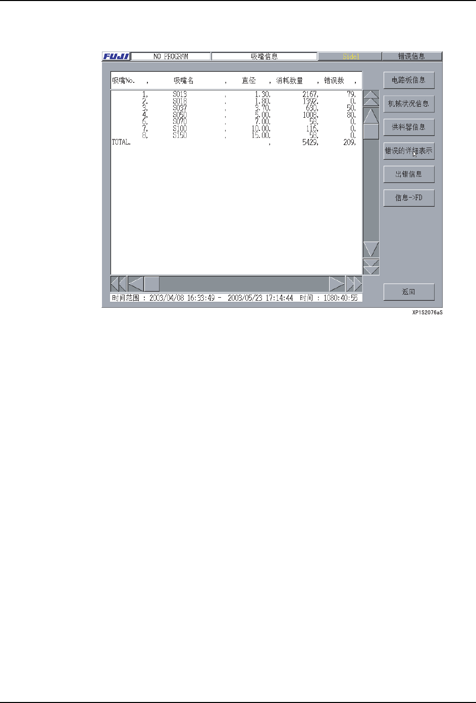 显示满足条件的记录数据或是在记录文件中注册的吸嘴直径。