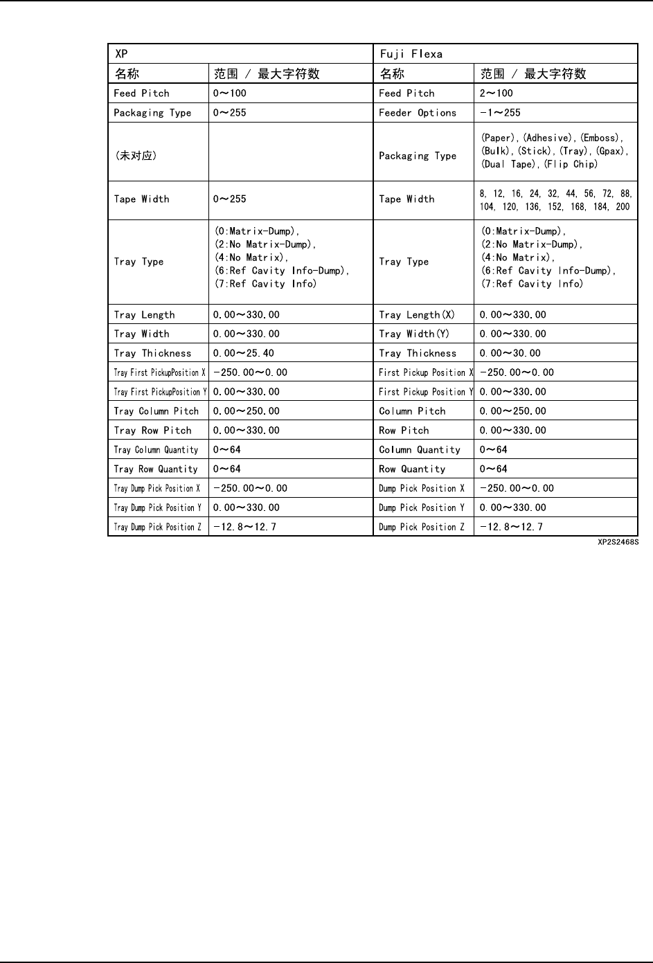 ·Feed Pitch:XP 和 Fuji Flexa 的有效范围不同。