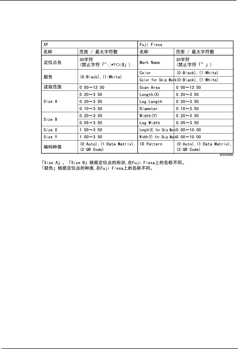 基准定位点数据的交错正方形的 Size B, 在 XP 机器上可以读取 / 保存,但是在 Fuji Flexa