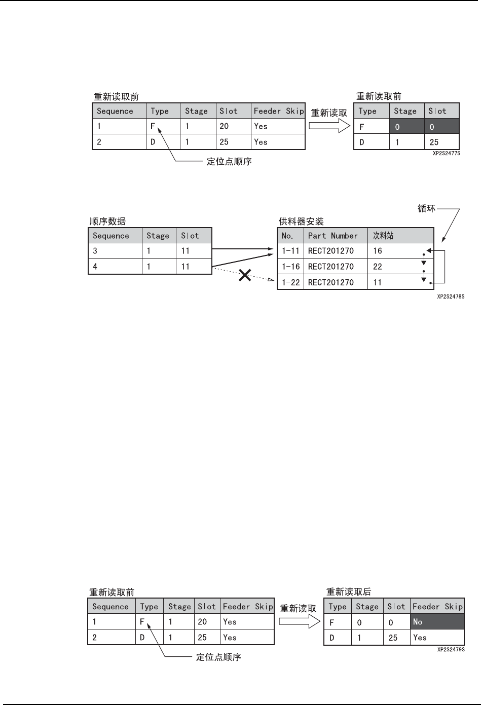 顺序数据的料站No指定次料站循环的供料器时,请不要仅仅指定次料站循环内的一个料站。