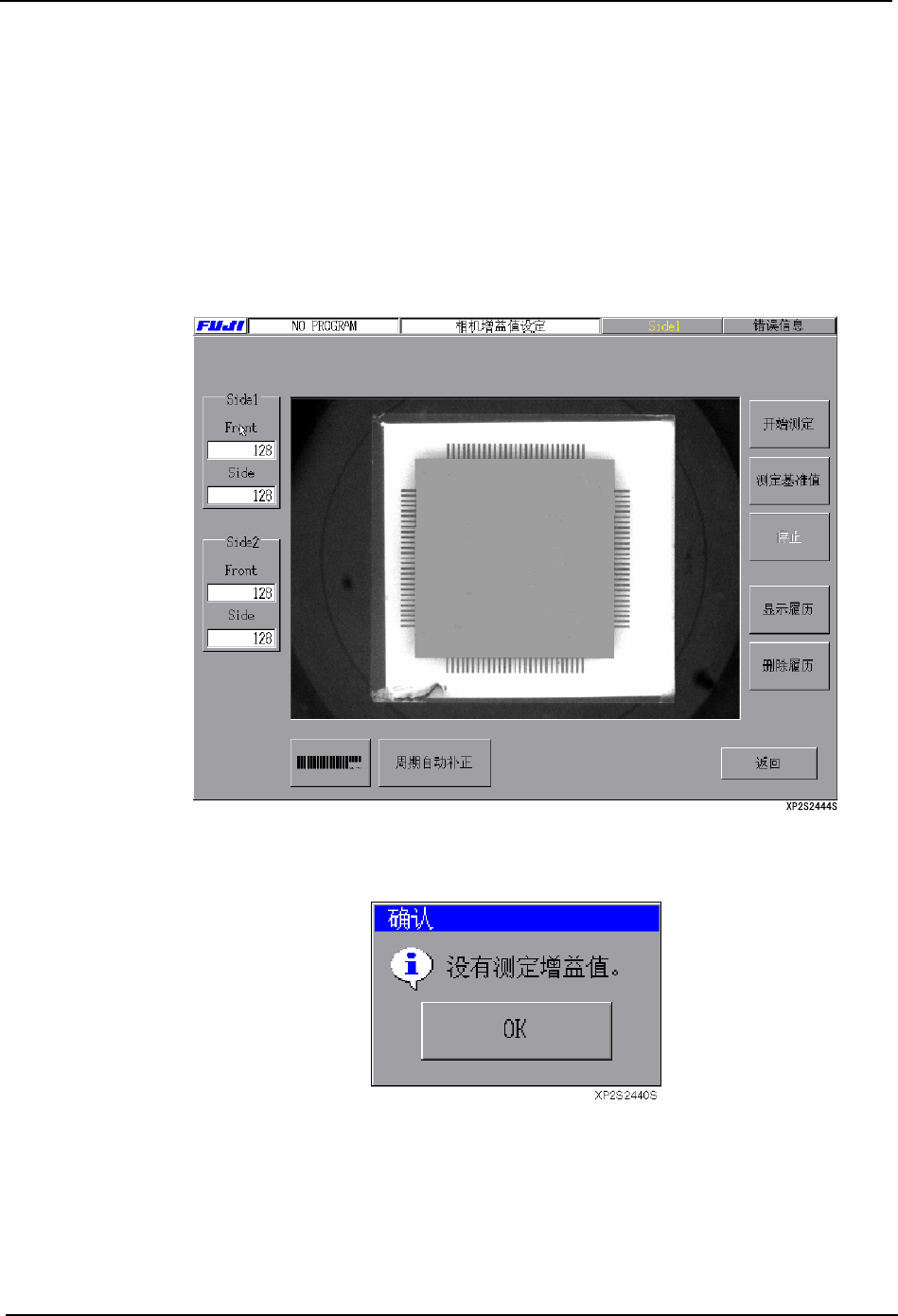吸嘴 No.1 ~ 12 为止的最大直径的标准吸嘴吸取相应尺寸的校正尺芯片后,相机的增益