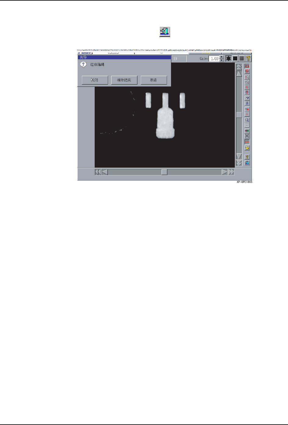 SYS-XP243-1.0S 5.MDW/PDW XP-242E/243E 系统手册 303 5.4.2 用 Vision Type10 编辑 Vision Type10 是用 「外形尺寸」 进行影像处理的模 板。 按键说明 变成输入元件尺寸的模式。 再次执行用向导进行的卡尺。 将指定的中心点扩大 / 缩小。左击时扩 大、右击时缩小。 显示被扩大时,将影像返回初始 倍率。 使用所设定的元件数据,求出从 影像识别到元件中心的距离。 显示菜…