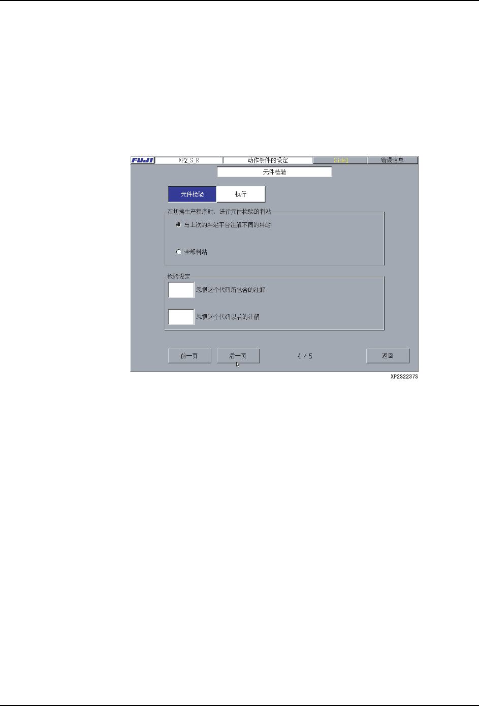 2. 按下 [ 后一页 ] 按键,显示出 [ 元件检验 ] 页。