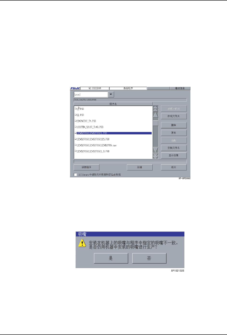如果在机器上安装的吸嘴和程序与指定的吸嘴不同,会显示出一个询问是否在生产中使用