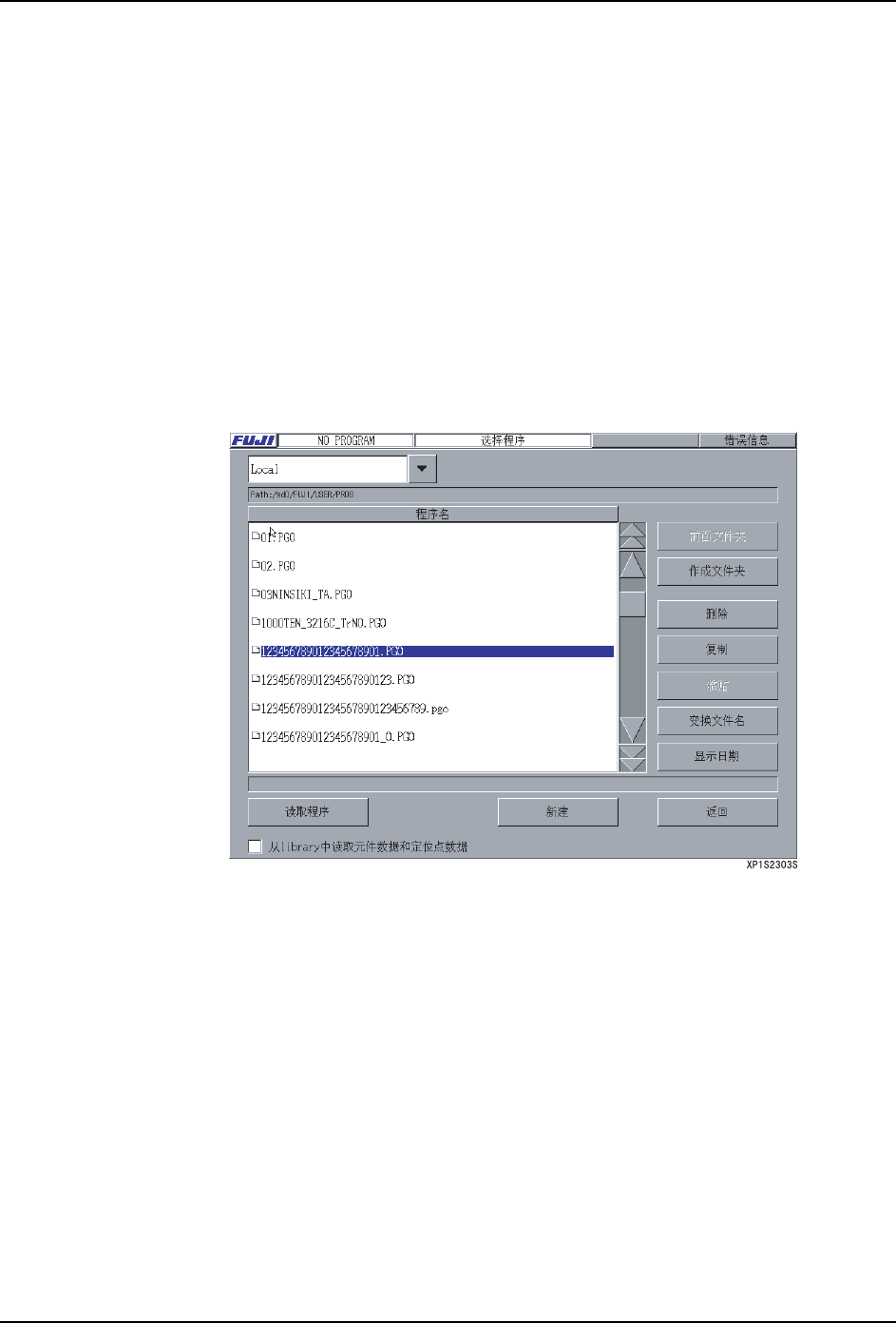 注意 ) 在此的程序读入是用来编辑程序的。为了生产而读取程序时,请从 [ 生产 ] 画面的程序选项中