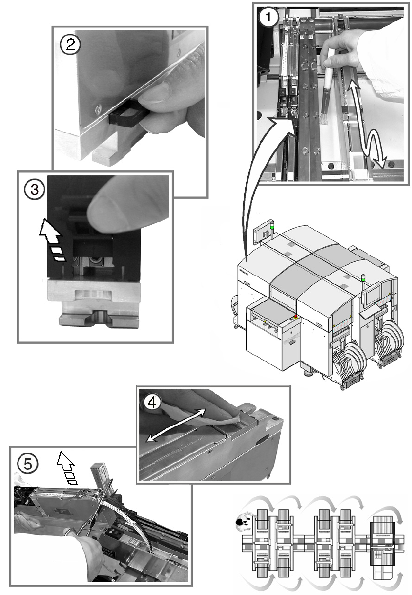 ① 用吸尘器清除 PCB 传送导轨上及四周所有的杂物。