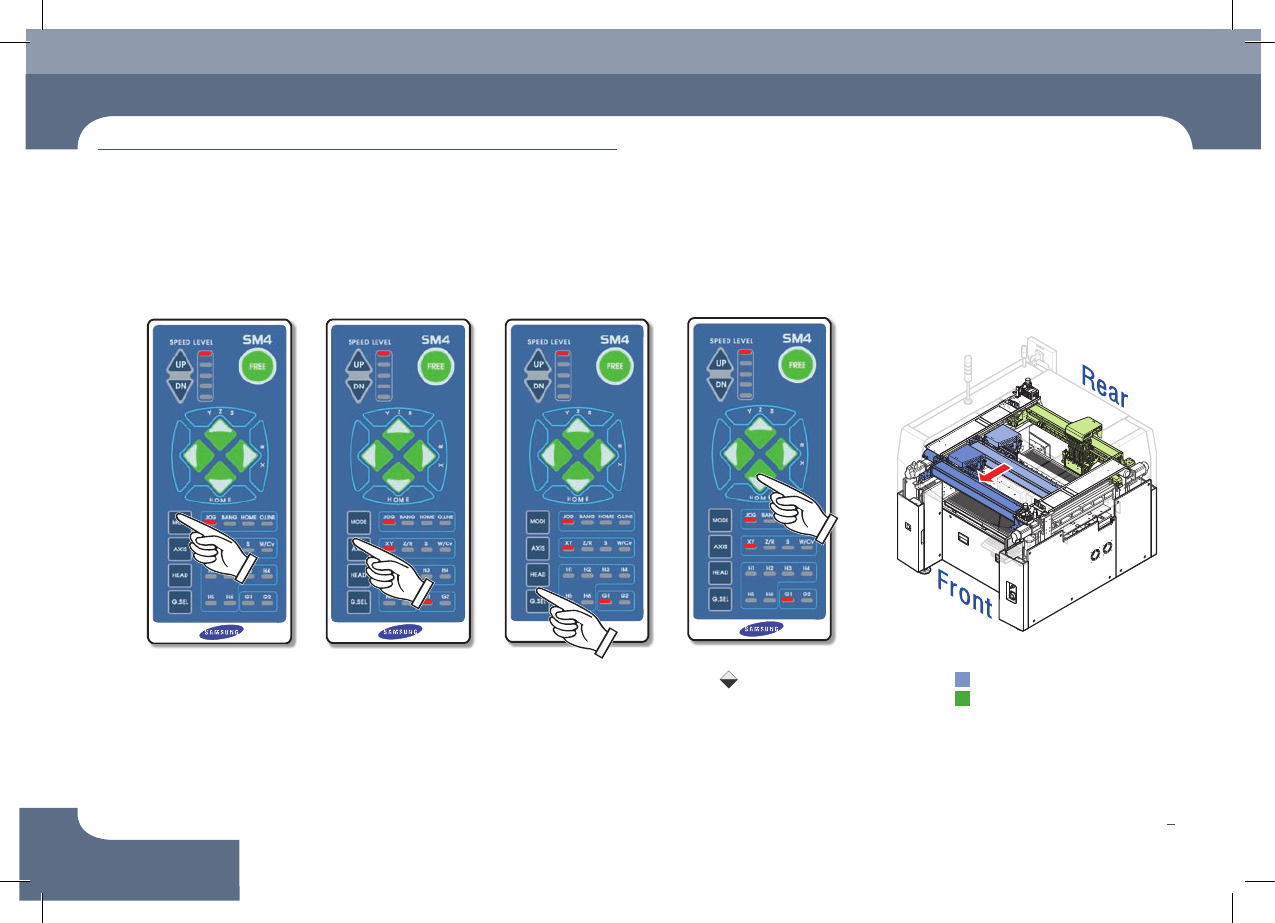 1. MODE 선택하기 2. AXIS 선택하기 3. G.SEL 선택하기 4. 조작키 누르기 Rear X Frame 전면 이동