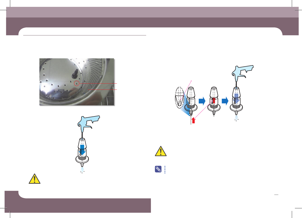 에어건으로 노즐 홀을 통하여 청소