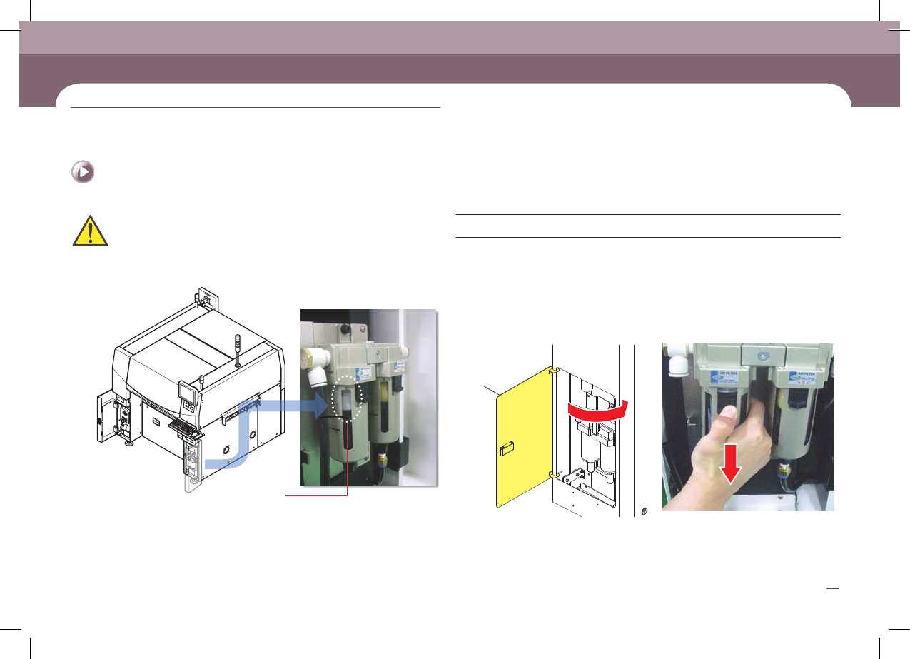 3. 장비 후면 우측 하단의 도어를 열어 Air Filter 용기 잠금 버튼을 내림