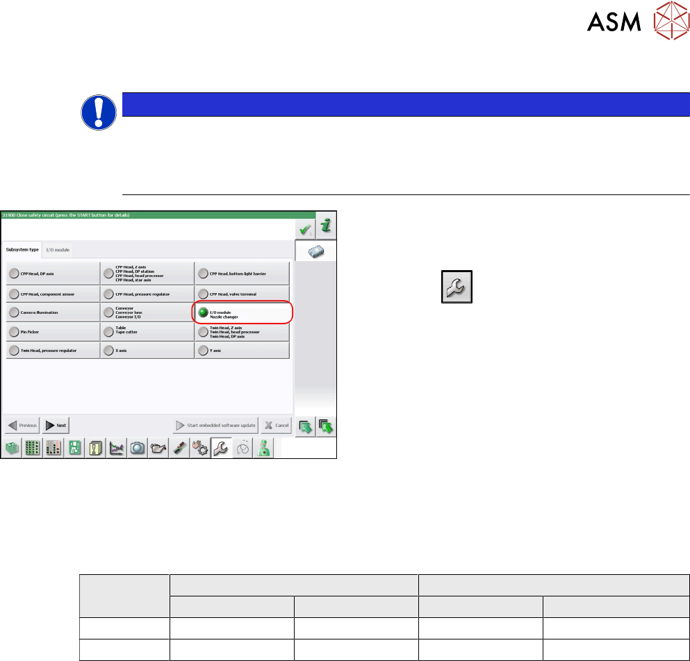 ► If the new nozzle changer is being fitted as a spare part in a machine with I/O module