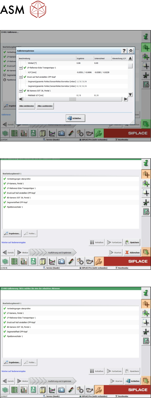 Anzeige der Kalibrierschritte und Statusanzeige.