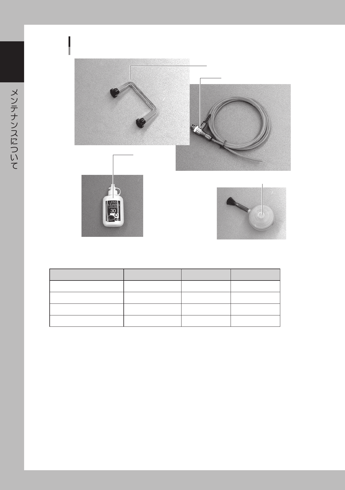 1-5 1 2 . 2 メ ン テ ナ ン ス ツ ー ル 2 . 2 . 1 ク リ ー ニ ン グ ツ ー ル クリーニングツール 同梱品 スプ ライン シャ フト清 掃用 キット ノズ ル清掃 ワイ ヤー フィ ーダー プレ ート清 掃用 ブラシ 光学 系清掃 用綿 棒 42 1 03 - E4 -0 0 ■ ク リ ー ニ ン グ ツ ー ル リ ス ト 同 梱 品 名 称 部 品 名 称 部 品 番 号 備 考 ス…