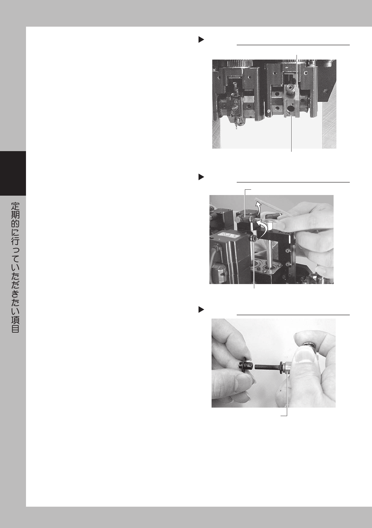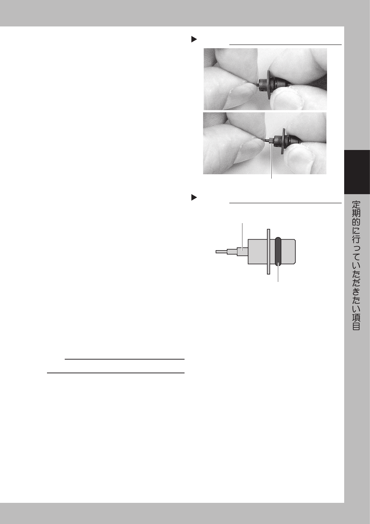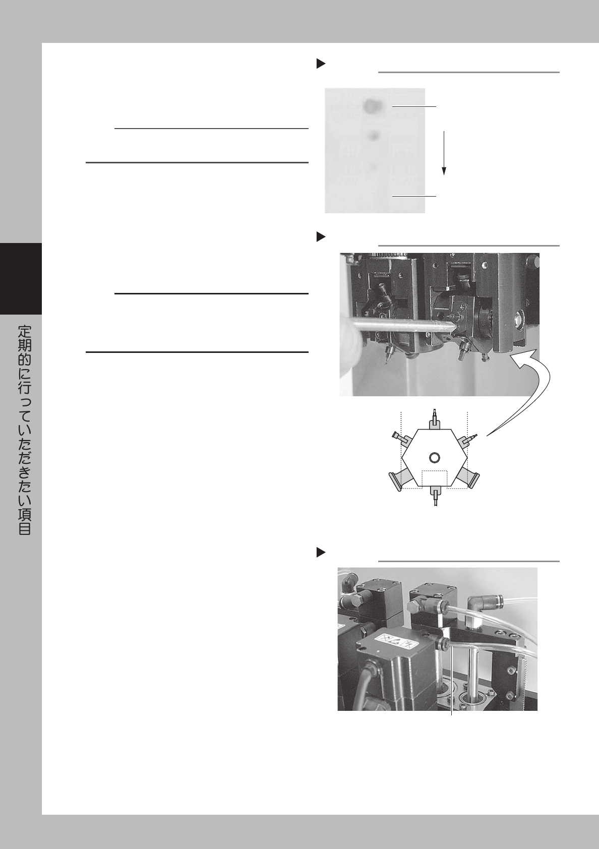 3-3 3 9 ノ ズ ル の 洗 浄 状 態 の 確 認 を し ま す 。 洗 浄 し た ノ ズ ル 先 端 部 の 詰 ま り 、 欠 け 、 異 物 の 付 着 が な い か 確 認 し ま す 。 ま た バ フ ィ ン グ 動 作 ( ス プ リ ン グ 動 作 ) も 確 認 し て く だ さ い 。 ・ 先 端 部 の 詰 ま り が 取 れ て い な い と き は 、 再 洗 浄 す る か 、 ノ ズ …