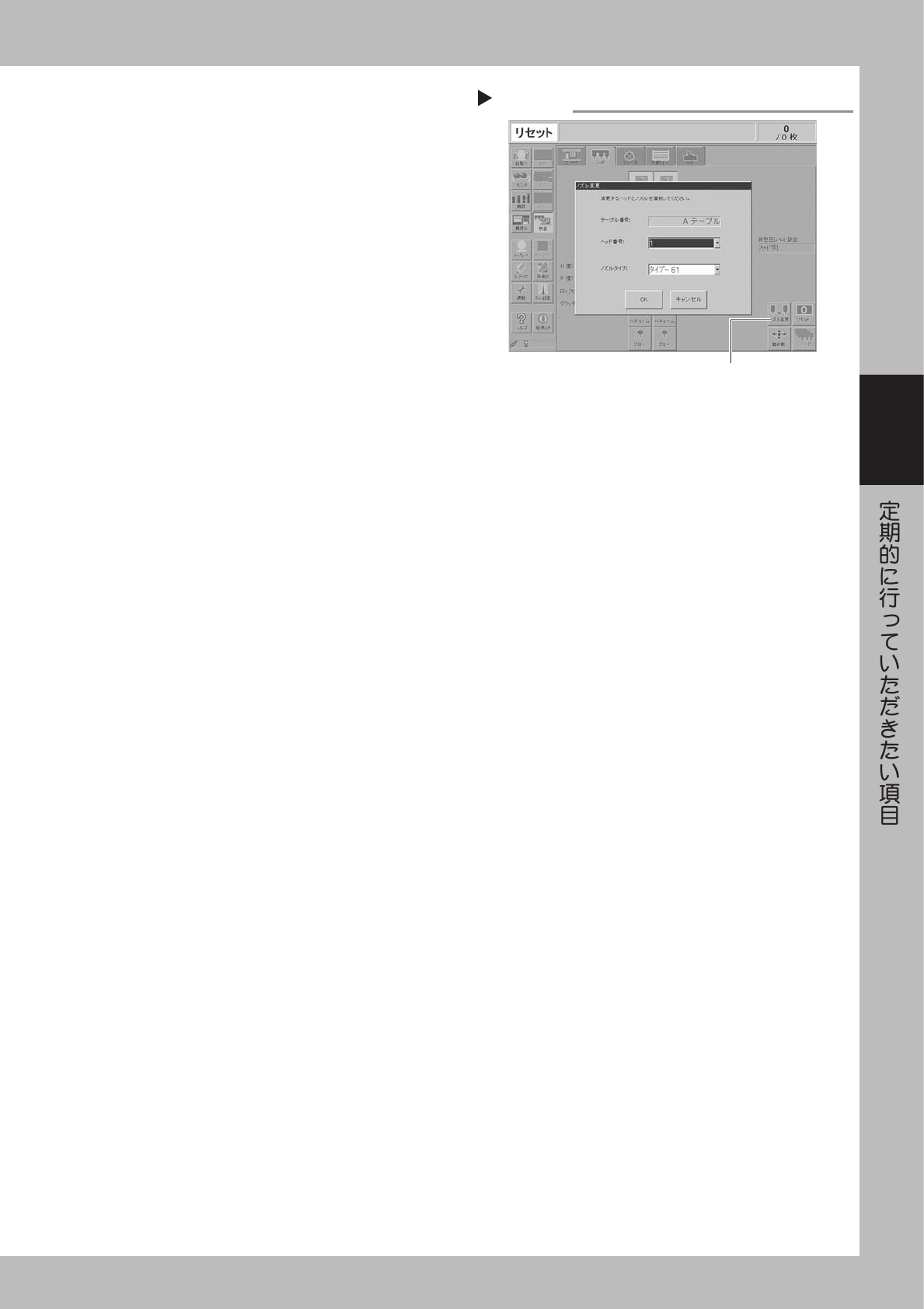 タブ画面の [ ノズル変更 ] ボタンで、点検してい
