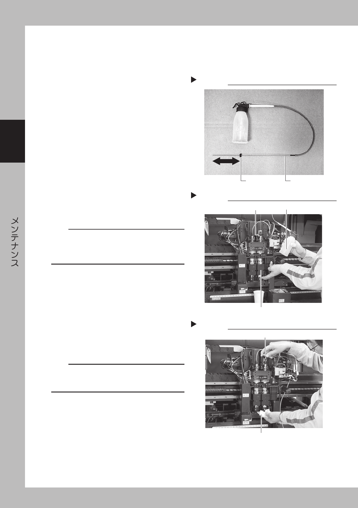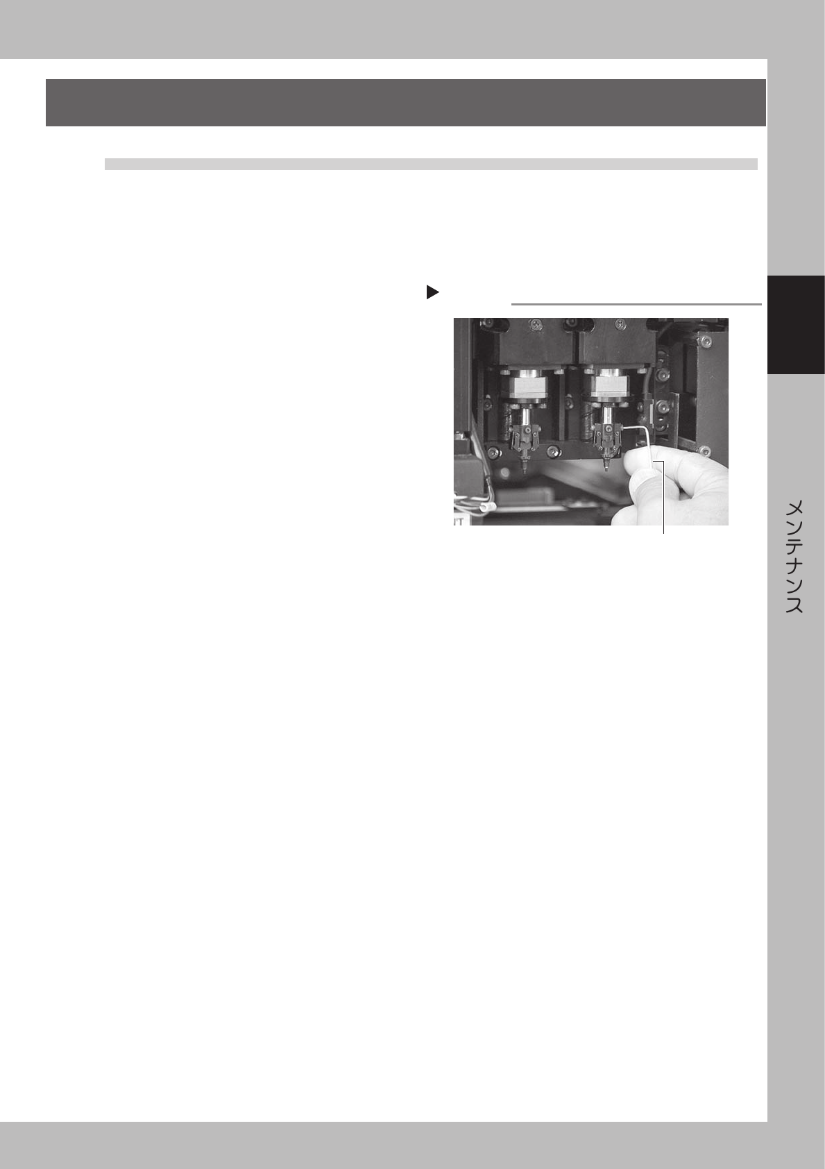 S-19 S YV88Xg-S 4 . 消 耗 品 の 交 換 方 法 4 . 1 ノ ズ ル 板 バ ネ の 交 換 e 1 ノ ズ ル を 取 り 外 し ま す 。 非 常 停 止 ボ タ ン を 押 し て ノ ズ ル を 取 り 外 し て く だ さ い 。 作 業 を 安 全 に 行 う た め 、 必 ず マ シ ン を 非 常 停 止 状 態 に し て く だ さ い 。 2 板 バ ネ を 外 し ま …
