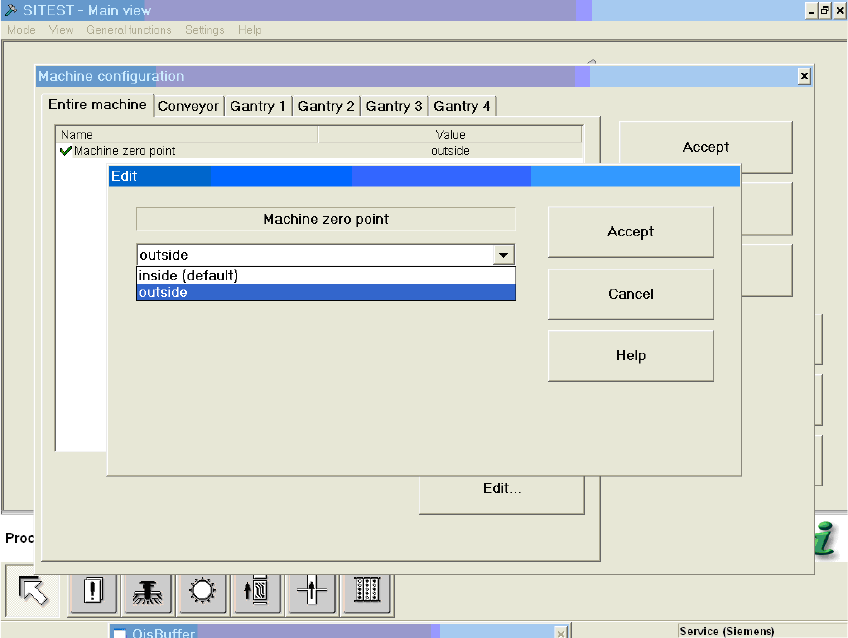 : Edit the "Machine zero point“ entry from "inside" for standard 216mm / 460mm LPT“ to "out-