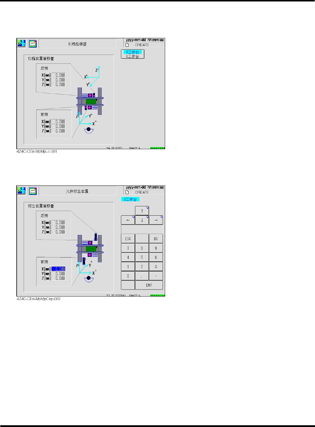 CM402 维修手册 2.1 关于机 器参数 Page 2-21 2.1. 21 引线检测器 引线检测器 引线检测器 引线检测器 ( 选 选 选 选购件 购件 购件 购件 ) 只适用于多功能 吸头 (3 个吸嘴 ) 扫描位置偏移量 显示引线检测器 ( 选购件 ) 的位置。 用在引线检测时 的吸头移动。 2.1. 22 部品排出位置 部品排出位置 部品排出位置 部品排出位置 ( ( ( ( 选购件 选购件 选购件 选购件 ) ) ) ) …