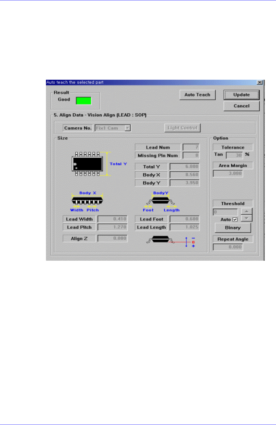 Automatically finds out the component align data. When auto teach is successful, the