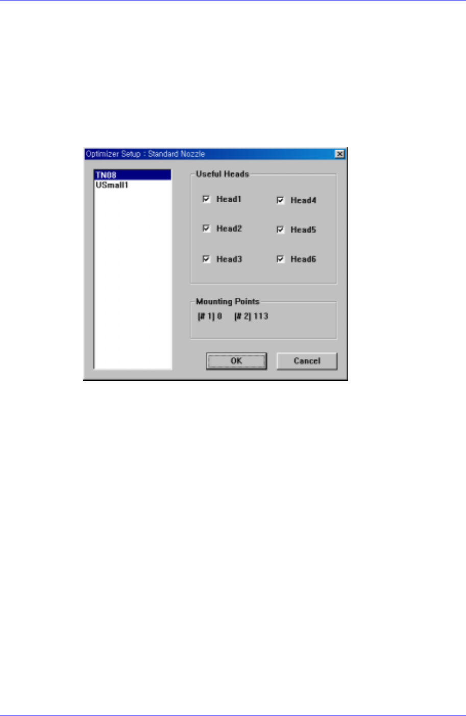 Optimization 10-5 <Nozzle #1 #2> list box All the nozzles used for the PCB being edite d are displayed in this list box and the status of each nozzle being the first operation nozzle or the second operation noz…