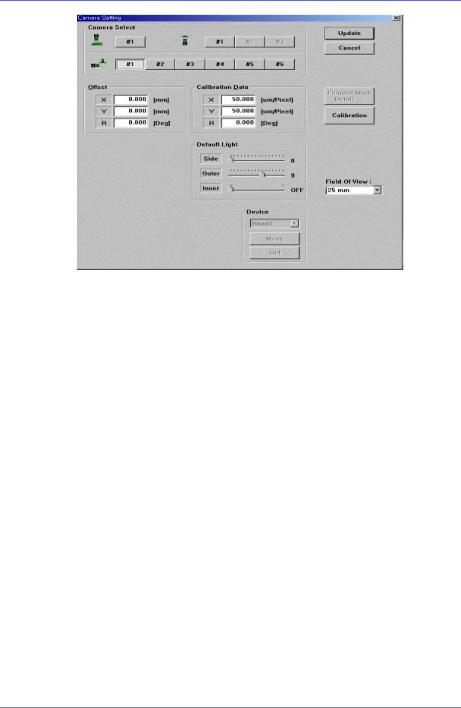 Samsung Component Placer CP45FV Administrator ’ s Guide function. <X> edit box Set the resolution of the camera in X direction. The unit is the number of pixels per mm. <Y> edit …