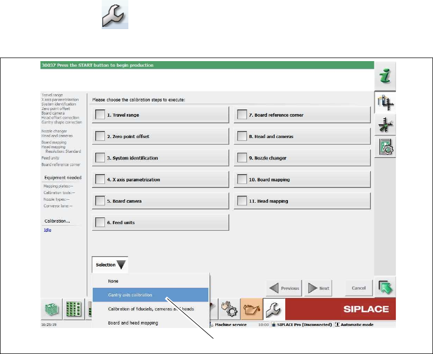 选择 Selection (选择) => Gantry axis calibration (悬臂轴校准) (1).