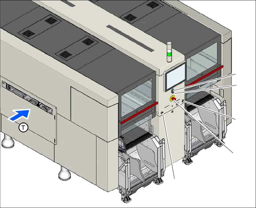 Fig. 2.6 - 6 Kontakters og knappers placering - PCB-indføringsside (eksempel SIPLACE X2 S / X3 S / X4 S)