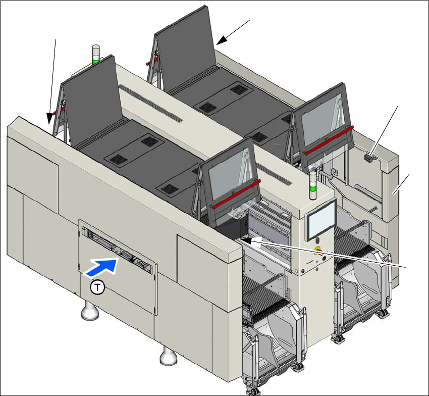 Fig. 2.6 - 7 Beskyttelseskontakters placering på bestykningsautomaten (eksempel SIPLACE X4i S)